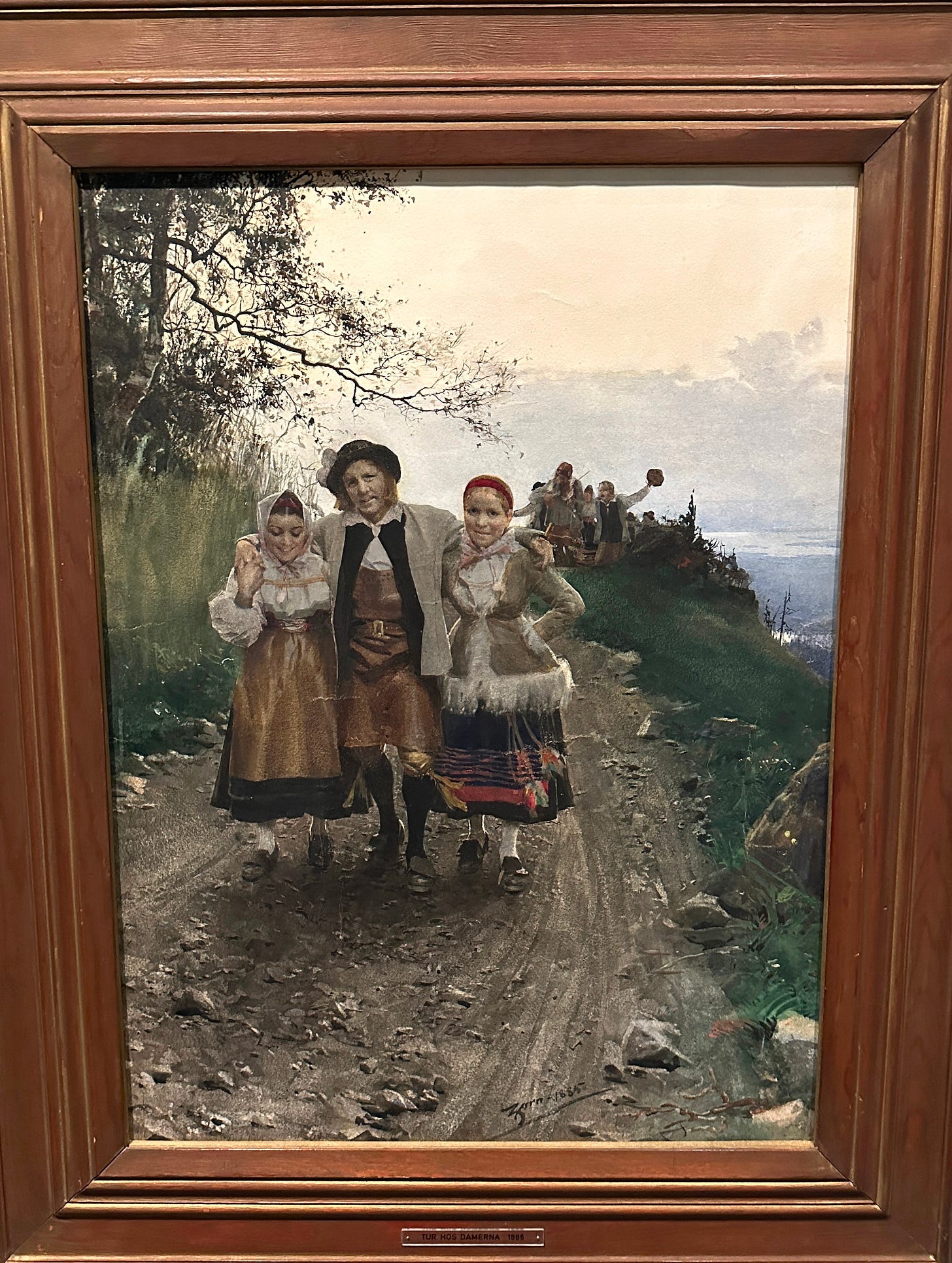 The first is Lucky with the Ladies (1883–1885), a watercolour so rich and full that I had to double-check the label; it simply doesn’t look like a watercolour. A group of villagers walking along a path, the young man escorting two women with a confidence that borders on playful pride. The colours, the fabric, the light, it is joyful, affectionate, gently sensual. Zorn treats these women with the same warmth and admiration he gives to aristocratic sitters. It is, again, that unmistakable positivity: a celebration of masculinity and femininity, of human presence, of the simple pleasure of being alive.