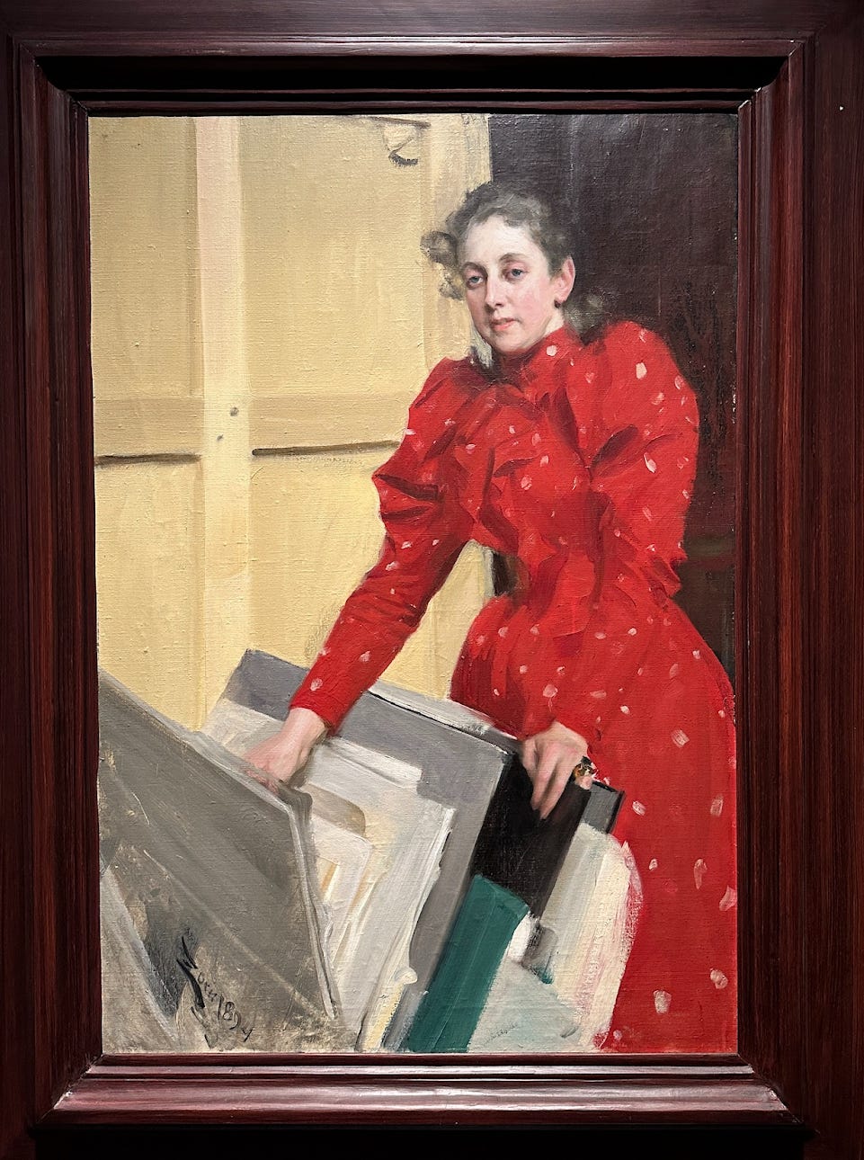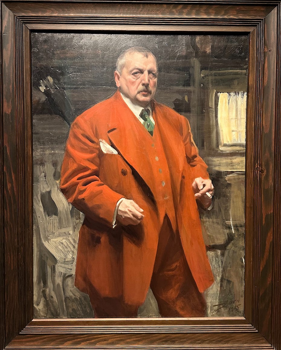 And then there is his self-portrait in the red three-piece suit, a painting that reveals more about Zorn the man than any biographical summary could. How often does one see a painter, especially in that era, dress himself in such bold colours? A red three-piece suit, a green tie, and yet nothing flamboyant or unserious about it.