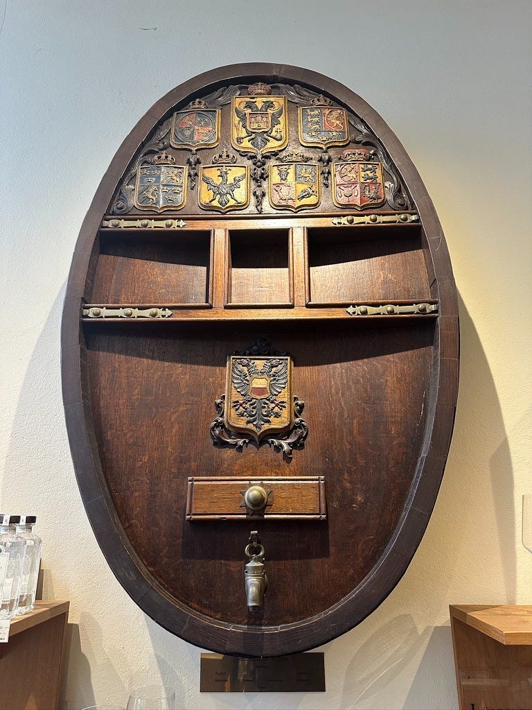 What struck me was what he did not do. He never tried to impress me. He never began a speech about tradition or heritage. Everything I learned came only because I asked. There was no performance in the place, no attempt to convince me it was special. It simply was. The age of the wood, the quiet certainty of the man behind the counter, and the ancient emblems resting beside the wine all seemed to exist without the need for explanation.