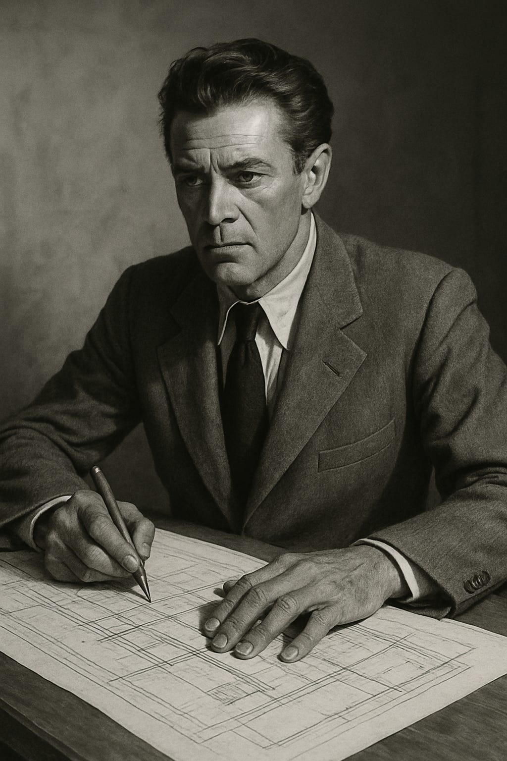 Roark does not set out to overthrow architecture. He rejects inherited forms only when they have become dishonest, decorative shells emptied of purpose. What he builds looks radical because it grows from a stricter fidelity to structure, material, and function than his profession is willing to tolerate. Tradition breaks against him because it has already hollowed itself out.